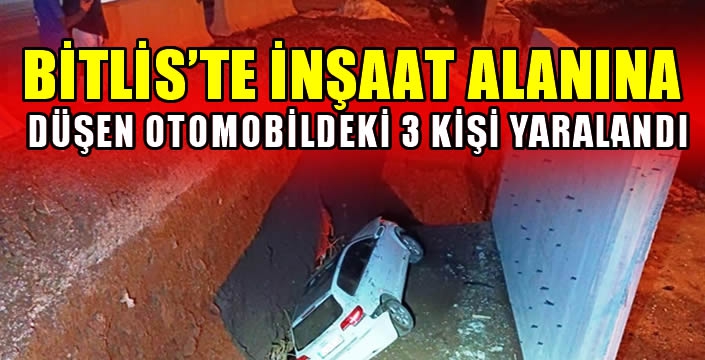 ALPARSLAN DİYARI- AFAD'tan yapılan açıklamaya göre, Bitlis-Tatvan kara yolu yolunda sürücüsünün kimliği belirlenemeyen 34 GLS 48 plakalı otomobil, kavşak çalışmasının yapıldığı yolda trafiğe kapalı şeride girerek 4 metre yükseklikten inşaat alanına düştü.