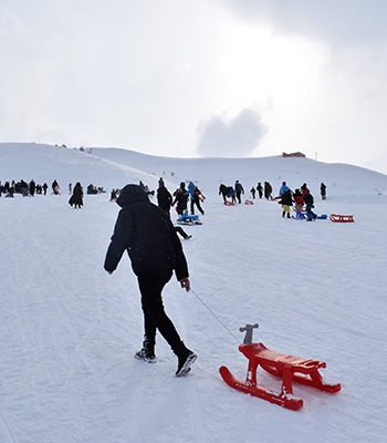 ALPARSLAN DİYARI-Bitlis-Tatvan kara yolundaki El-Aman Hanı Kayak Merkezi'nde düzenlenen şenliğe katılanlar, kayak ve snowboard yaptı, çocuklar da kızakla kayarak eğlendi.