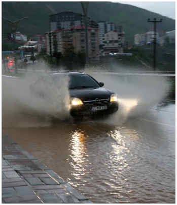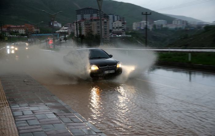 Sürücüler, su birikintileri nedeniyle araçlarıyla ilerlemekte güçlük çekti.