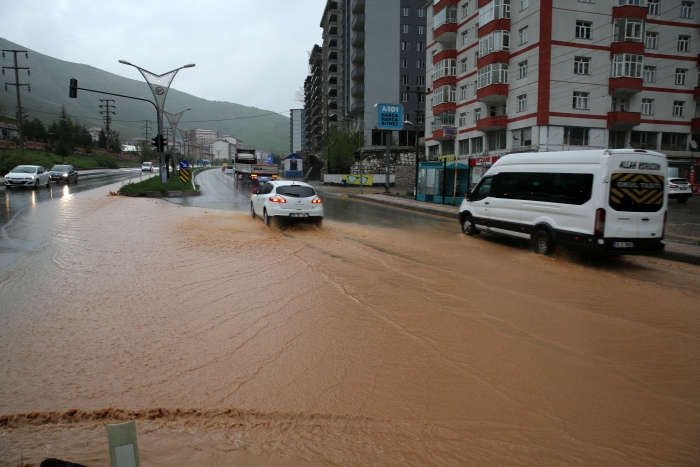 ALPARSLAN DİYARI- Kentte öğle saatlerinde başlayan ve aralıklarla etkisini sürdüren sağanak nedeniyle yollarda su birikintileri oluştu.