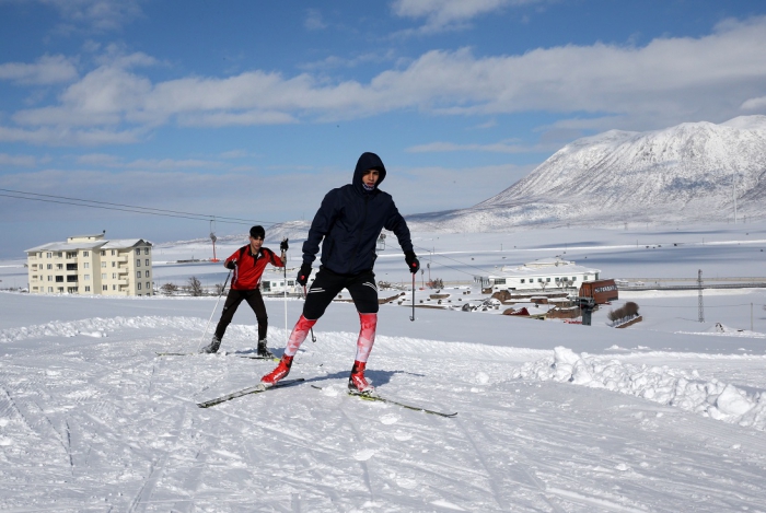 ALPARSLAN DİYARI- Kayaklı Koşu Türkiye Şampiyonası'nda altın madalya alarak milli formayı giymeyi hedefleyen Bitlisli sporcular, hava sıcaklığının sıfırın altında 15 dereceye kadar düştüğü Rahva bölgesinde hazırlıklarını sürdürüyor