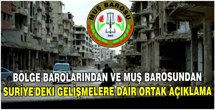 Muş Barosu tarafından yapılan açıklamada, Suriye’de belirli gruplara yönelik saldırıların sadece bu toplulukları değil, bölgedeki genel barışı ve birlikte yaşama kültürünü de tehdit ettiği vurgulandı. Açıklamada şu ifadelere yer verildi: