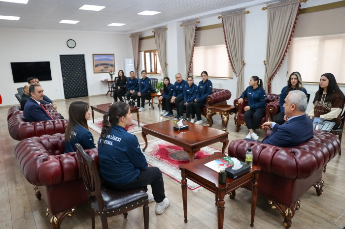 ALPARSLAN DİYARI- Büyük başarının ardından Muş Spor Lisesi Bayan Voleybol Takımı, İl Milli Eğitim Müdürü Enver Kıvanç ve Voleybol İl Temsilcisi Ahmet Balcı ile birlikte Muş Valisi Avni Çakır’ı makamında ziyaret etti.