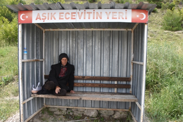 Sinop'un Boyabat ilçesinde yaşayan ve 'Aşık Ecevit' lakabıyla tanınan Ecevit Öküzcü, 24 yıldır yol kenarında 'Aşık Ecevit'in yeri' diye yapılan durakta sevdiği kadını bekliyor.