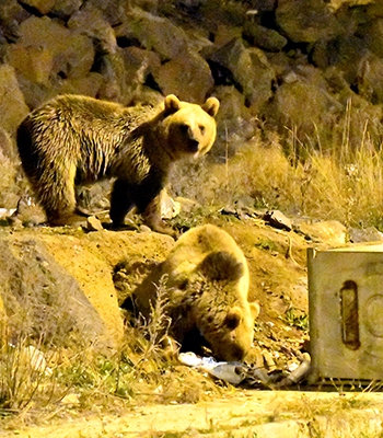 Yaz döneminde ormanlık alanlarda yaban meyvelerle beslenen bozayılar, sonbaharda kış uykusuna yatmadan besin depolamak için hazır yiyecek olarak gördükleri çöplerden besleniyor.