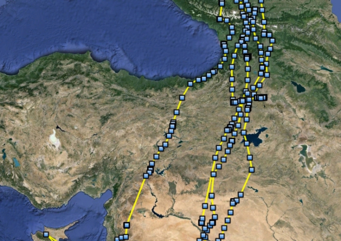 Bozkır şahini, 20 Nisan 2024'te Şırnak'tan Türkiye'ye girdikten sonra sürekli uçuşuna devam edip Kars üzerinden Rusya'ya gitti.