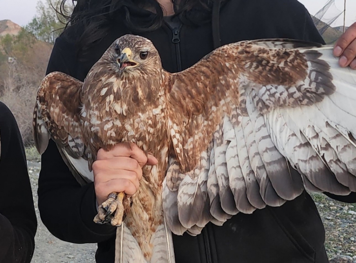 Ekipler, 14 Nisan 2022'de Iğdır'da ağlara takılan bozkır şahinine uydu vericisi yerleştirerek doğal ortamına saldı.