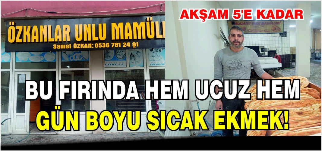 Fırında gün boyunca kesintisiz sıcak ekmek çıkıyor. Malazgirt halkı, Sümer Giyim yanı, Casper Bilgisayar karşısında bulunan Özkanlar Unlu Mamüllerinden, 08.00 ile 17.00 saatleri arasında sürekli yeni çıkan taze ekmek alabiliyor.