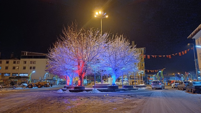 Malazgirt Belediye Başkanı Cengiz Altın’ın talimatıyla Cumhuriyet Meydanında bulunan ağaçlara yerleştirilen rengârenk ışıklarla dekoratif led ışıklandırma çalışması yapıldı. Led ışıklarla hem cadde aydınlatması yapıldı hem de ilçeye görsel güzellik kattı.