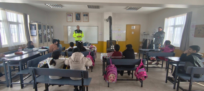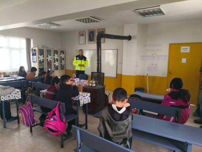 ALPARSLAN DİYARI-18 Şubat 2026 tarihinde Kotanlı Köyü İlkokulu’nda gerçekleştirilen eğitim faaliyetinde, okulda öğrenim gören 19 öğrenciye trafik güvenliği konusunda bilgilendirme yapıldı.