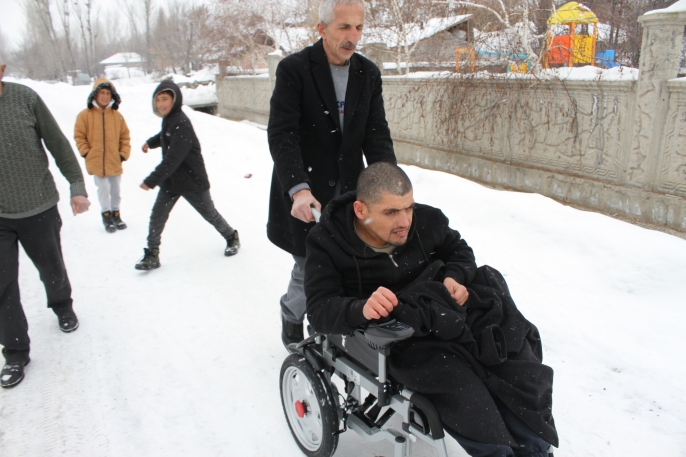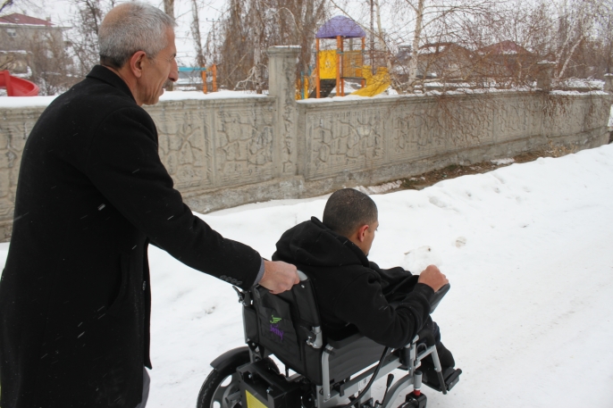 ALPARSLAN DİYARI- Bulanık ilçesinde yaşayan 27 yaşındaki engelli genç Ahmet Aydın, sosyal medya üzerinden ulaştığı Muhtar Başaran’dan akülü sandalye talebinde bulundu.