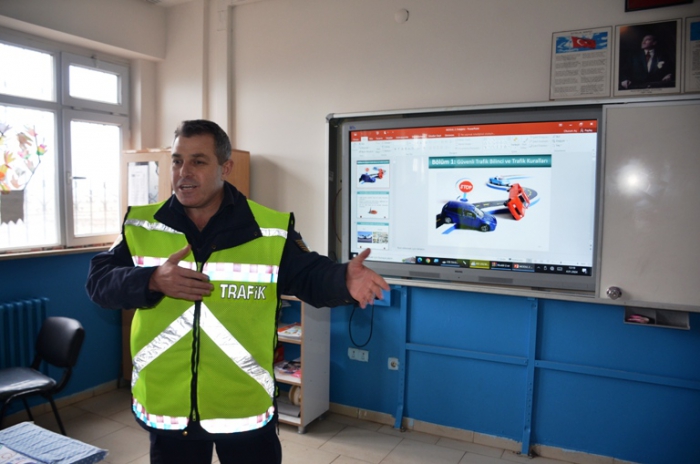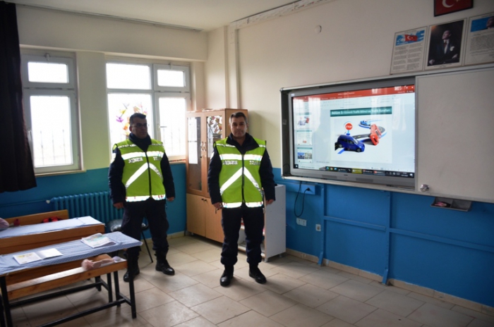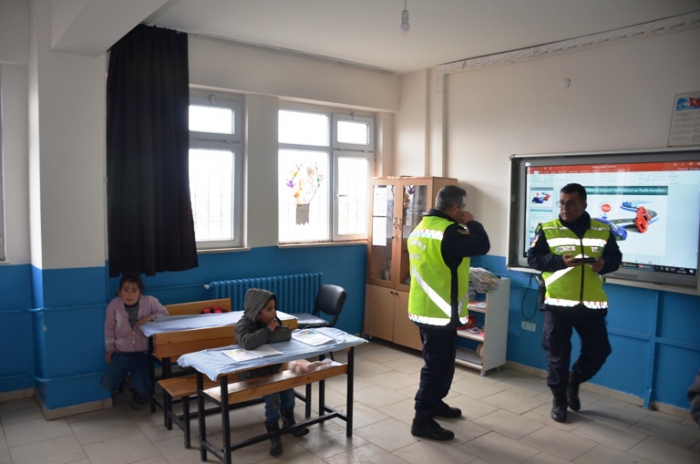 ALPARSLAN DİYARİ- Bulanık İlçe Jandarma Komutanlığı trafik ekipleri, Adıvar İlkokulunda öğrencilerle bir araya gelerek trafik eğitimi verdi. Öğrencilere trafik güvenliği konusunda temel bilgiler veren jandarma ekipleri; trafiğin tanımı ve emniyet kemeri kullanımının önemi, yolun karşısına geçme kuralları, yaya kaldırımlarının önemi, trafik işaretleri ve anlamları, araçlara binme ve inme kuralları ile araç içerisinde yolcuların uyması gereken kuralları anlattı.