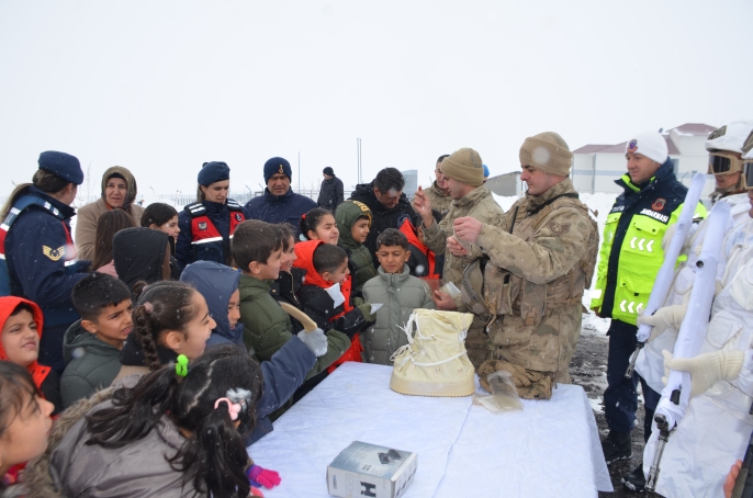 Sosyal Yardımlaşma ve Dayanışma Vakfı ekipleri de çocuklara mont, bot ve eldiven hediye etti, ikramlarda bulundu.