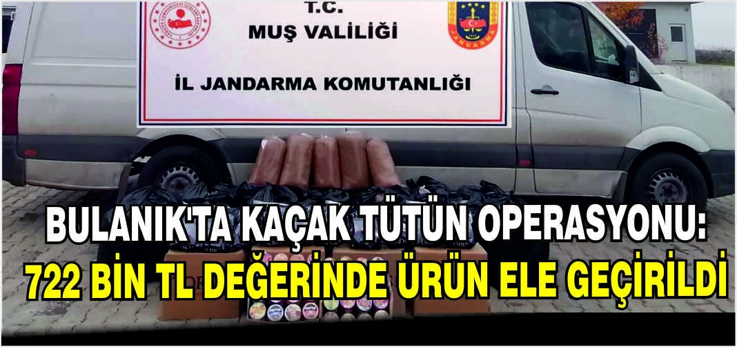 Bulanık Sulh Ceza Hâkimliğinden alınan arama kararı doğrultusunda Bulanık İlçe Jandarma Komutanlığı ekipleriyle ortak gerçekleştirilen operasyonda, piyasa değeri yaklaşık 722 bin TL olan çok miktarda kaçak tütün ürünü ele geçirildi.