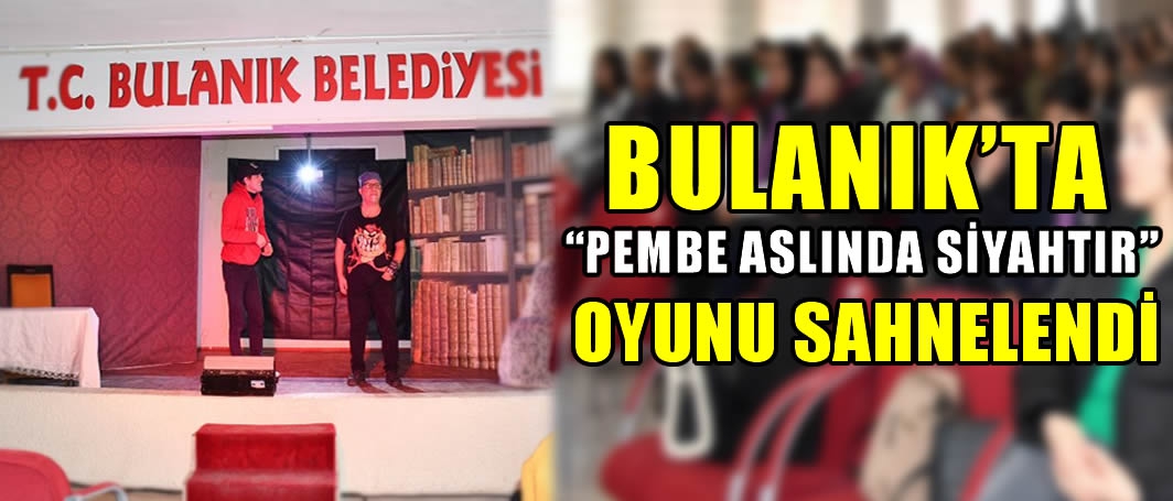 Bulanık Belediyesi kültürel faaliyetler etkinlikleri kapsamında öğrenciler için 3 gün 3 seans şeklinde süren madde bağımlılığı ile mücadele için "Pembe Aslında Siyahtır" adlı tiyatro oyunu Belediye Konferans Salonunda yaklaşık bin 500 öğrenci için sergilendi.