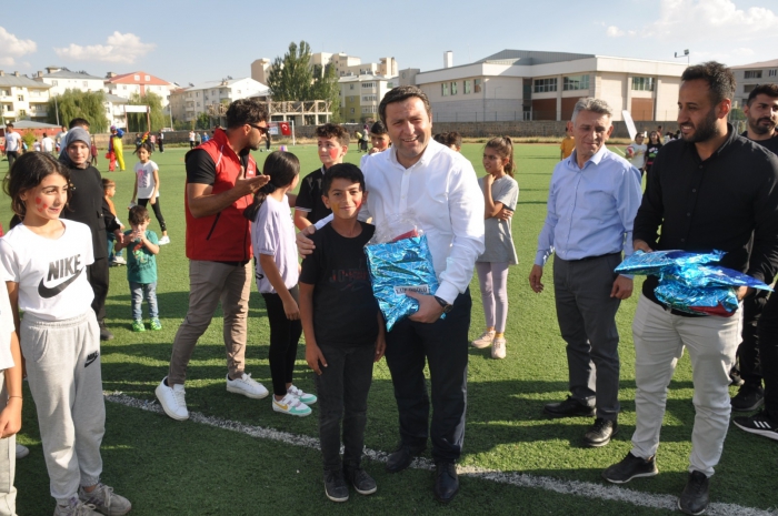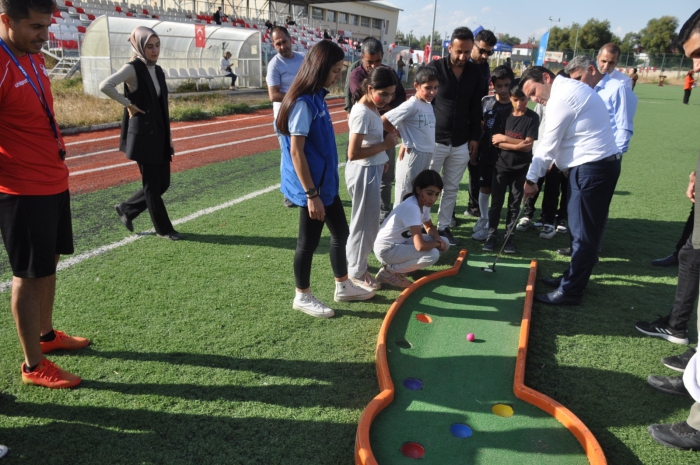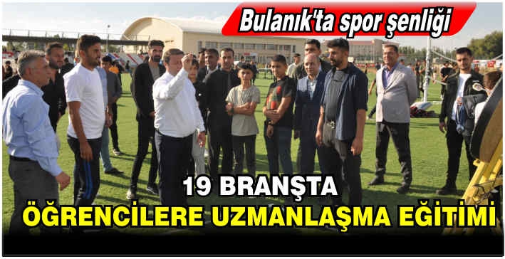 ALPARSLAN DİYARI- Bulanık Kaymakamlığı, Belediye ve Gençlik Spor İlçe Müdürlüğü tarafından düzenlenen Spor Şenlikleri Etkinliğinde Kaymakam ve Belediye Başkan V. Oğuzhan Ocak, öğrenciler ile bir araya gelerek keyifli vakit geçirdi. ‘Sporla Yeni Bir Dünya Yeni Bir Hayat’ adıyla ilçe stadında yapılan spor şenliğinde öğrenciler, Voleybol, Atletizm, Basketbol, Okçuluk, Tenis, Futbol, Karaçalı, Badminton, Golf vb. 19 farklı etkinlikte yarıştı.