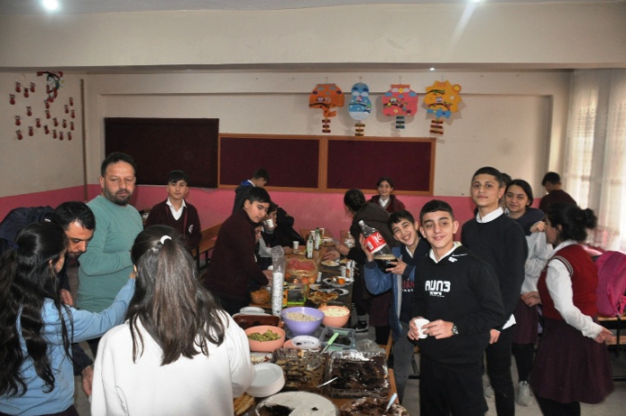 ALPARSLAN DİYARI- Hafta çerçevesinde öğrenciler yerli malı kullanma, bilinçli ve tutumlu olma davranışı kazanmaları için etkinlik düzenlendi. Konuyla ilgili bir açıklama yapan Turgut Özal Ortaokulu Türkçe Öğretmeni Vedat Balıkçı, "Tutum, Yatırım ve Türk Malları Haftası"nı kutladıklarını belirterek, "Türkiye'nin her yerinde kutlandığı gibi biz bu etkinleri düzenlemeye karar verdik. Sağ olsun velilerimiz ve öğrencilerimiz çok emek harcadılar. Öğrencilerimize ve özellikle velilerimize teşekkür ediyoruz" dedi.