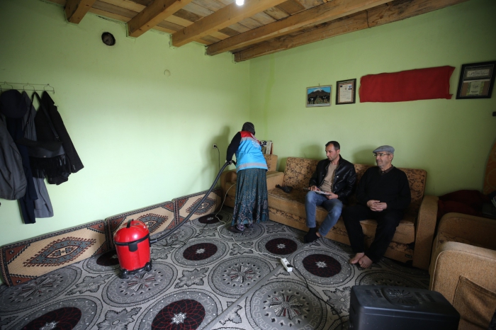 Muş'un Bulanık ilçesinde, kaymakamlık Vefa Projesi kapsamında yaşlı ve engellilerin evine giden görevliler hem temizlik yapıyor hem de taleplerini ilgili kurumlara iletiyor.