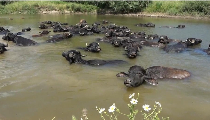Yaklaşık 3 saat nehrin serin sularında bekletilen manda sürüsü, akşama kadar otlatıldıktan sonra köylere geri götürülüyor. Nehirde serinletilen mandaların süt verimi ise artıyor.