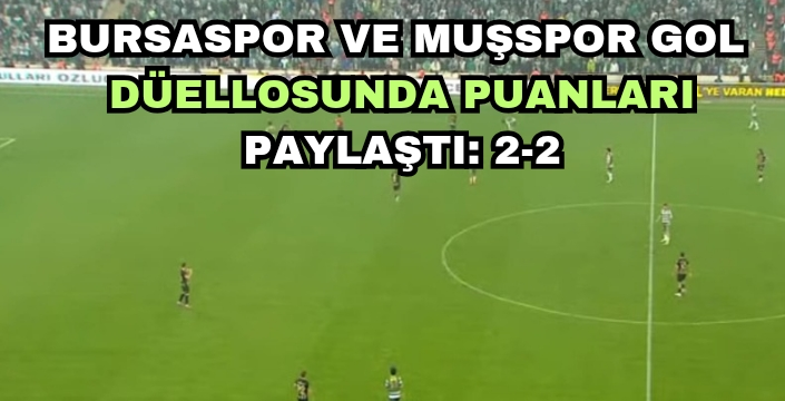 Bu sonuçla Bursaspor ligdeki çıkışını sürdüremese de evinde yenilmezliğini korudu. Muşspor ise güçlü rakibi karşısında sergilediği dirençli oyunla deplasmandan altın değerinde bir puanla döndü.