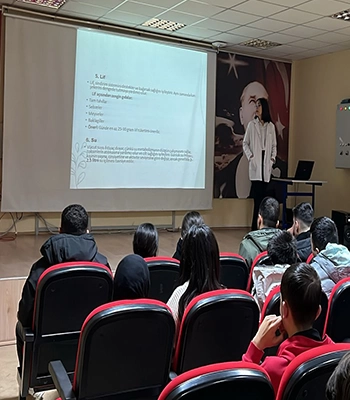 ALPARSLAN DİYARI- Çemişgezek Çok Programlı Anadolu Lisesi Konferans Salonu'nda gerçekleştirilen etkinlikte, Fırat Üniversitesi Beslenme ve Diyetetik Bölümü 3. sınıf öğrencisi Buse Biçici sunum yaptı.