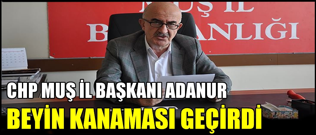 ALPARSLAN DİYARI- Cumhuriyet Halk Partisi (CHP) Muş İl yönetiminde yıllarca başkanlık yapan İsmail Adanur, dün akşam saat 23.30 da fenalaştı. Muş Devlet Hastanesine kaldırılan Adanur, burada sağlık ekipleri tarafından ilk müdahale yapıldı. Muş Devlet Hastanesinde Beyin Cerrahı uzmanı olmamasından dolayı Adanur, Elazığ Medical Park hastanesine sevk edildi.