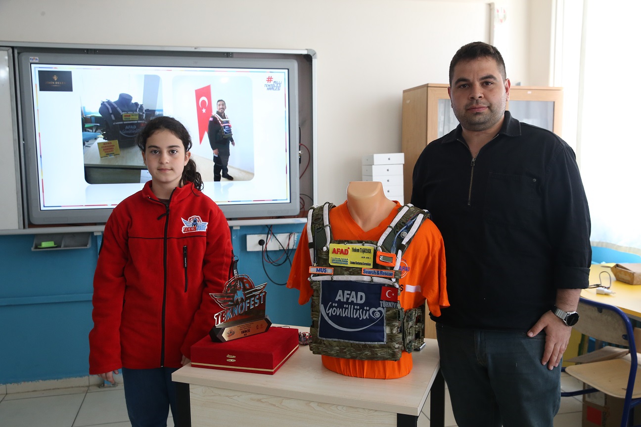 Muş'ta öğrenciler, AFAD personelinin sahadaki arama kurtarma çalışmalarını kolaylaştırmak amacıyla "akıllı yelek" tasarladı.