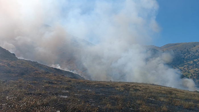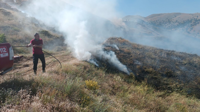 ALPARSLAN DİYARI-Gerçekli köyündeki kırsal alanda henüz belirlenemeyen nedenle örtü yangını çıktı.
