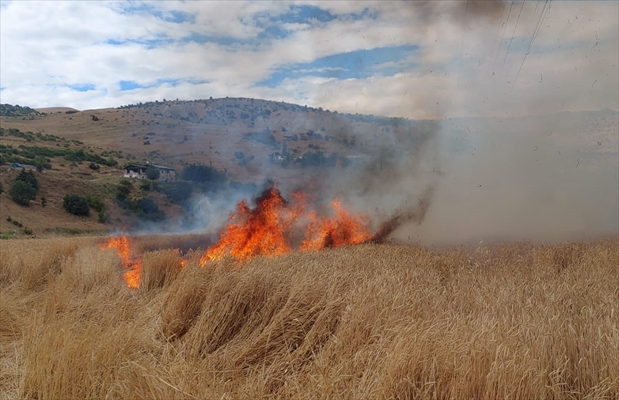 Yangında, yaklaşık 10 dönümlük buğday ekili alanda zarar oluştu.