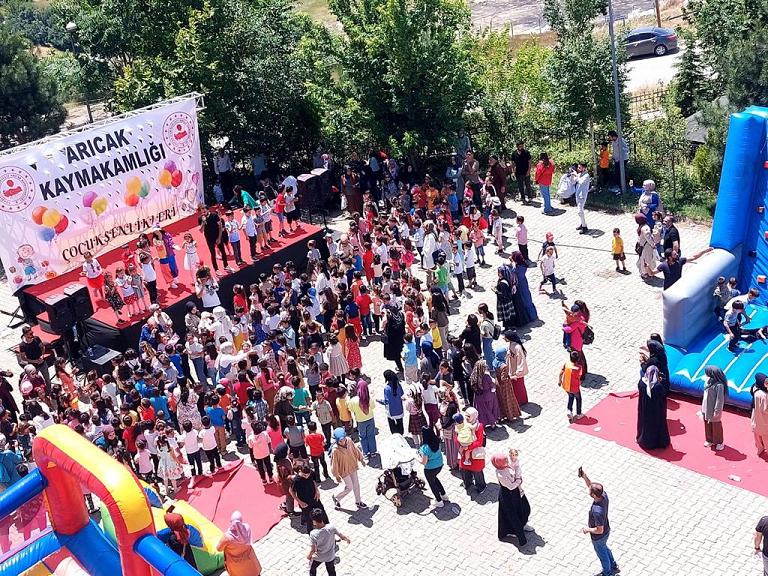 Elazığ'ın Arıcak ilçesinde düzenlenen çocuk şenliği renkli görüntüler oluşturdu.