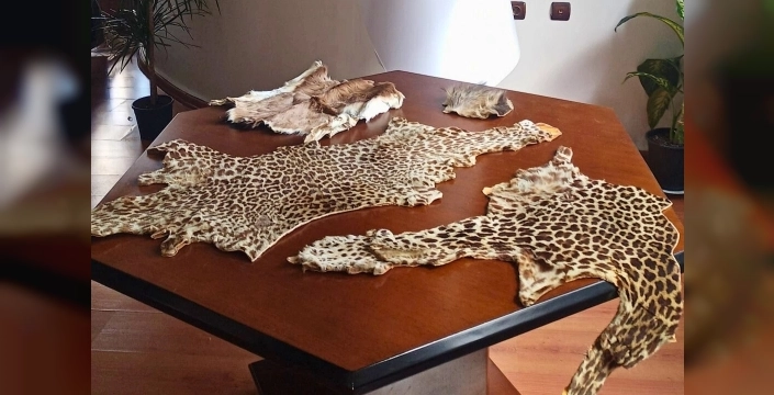 Yapılan aramalarda, 1 adet bütün leopar postu, 3 parça halinde leopar postu, 2 parça halinde ceylan postu ve 4 adet baykuş gözü tespit edildi. Tüm bu ürünler, yaban hayvanlarının korunmasına yönelik yasaları ihlal ediyordu.