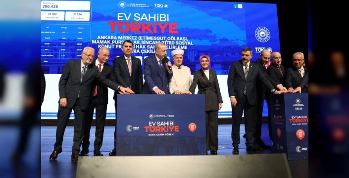 Cumhurbaşkanı Recep Tayyip Erdoğan, Beştepe Millet Sergi Salonu’nda düzenlenen 31 bin 73 konut kura çekim töreninde, ‘Ev Sahibi Türkiye’ projesinin 500 bin sosyal konut hedefini hatırlatarak, hak sahiplerinin yeni konutlarında sağlık ve huzur içinde yaşamalarını diledi.
