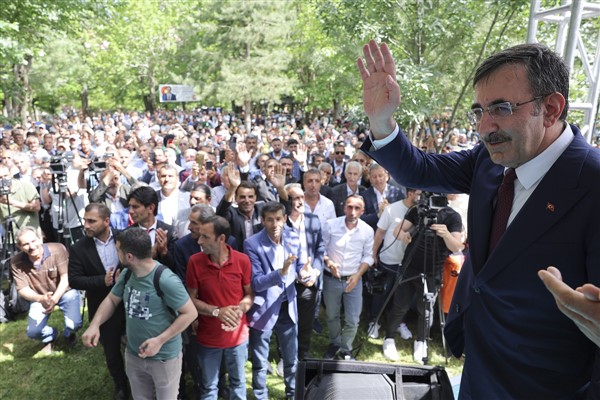 Cumhurbaşkanı Yardımcısı Cevdet Yılmaz, Bingöl’de esnaf ziyaretinin ardından Kültür Park’ta düzenlenen 'Halk Buluşması' programına katıldı. Burada konuşan Yılmaz, “Bingöl için, Türkiye için durmadan çalışmaya devam edeceğiz. 21 yıldır her saatimizi, her dakikamızı, her bir anımızı Sayın Cumhurbaşkanımızın liderliğinde milletimize hizmet aşkıyla geçiriyoruz.