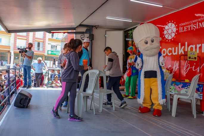 "Bir tır dolusu mutluluk şehrine geliyor" temasıyla düzenlenen etkinlikte, çocuklar müzik ve palyaçolar eşliğinde eğlendi.
