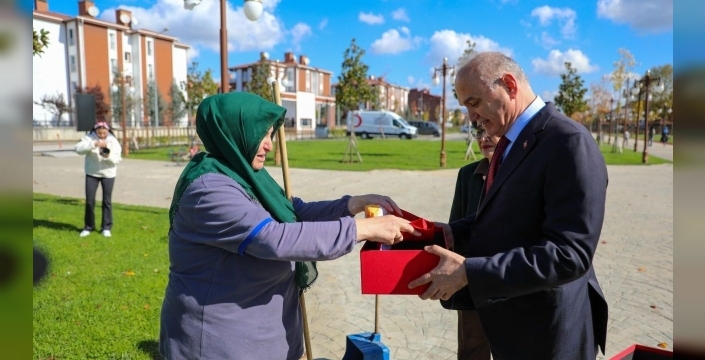 Düzce Belediyesi tarafından Cumhuriyet Bayramı vesilesiyle gerçekleştirilen bir sosyal deneyde gösterdiği örnek davranışla geniş yankı uyandıran temizlik görevlisi Rukiye Tuna, Belediye Başkanı Dr. Faruk Özlü tarafından takdir edildi.