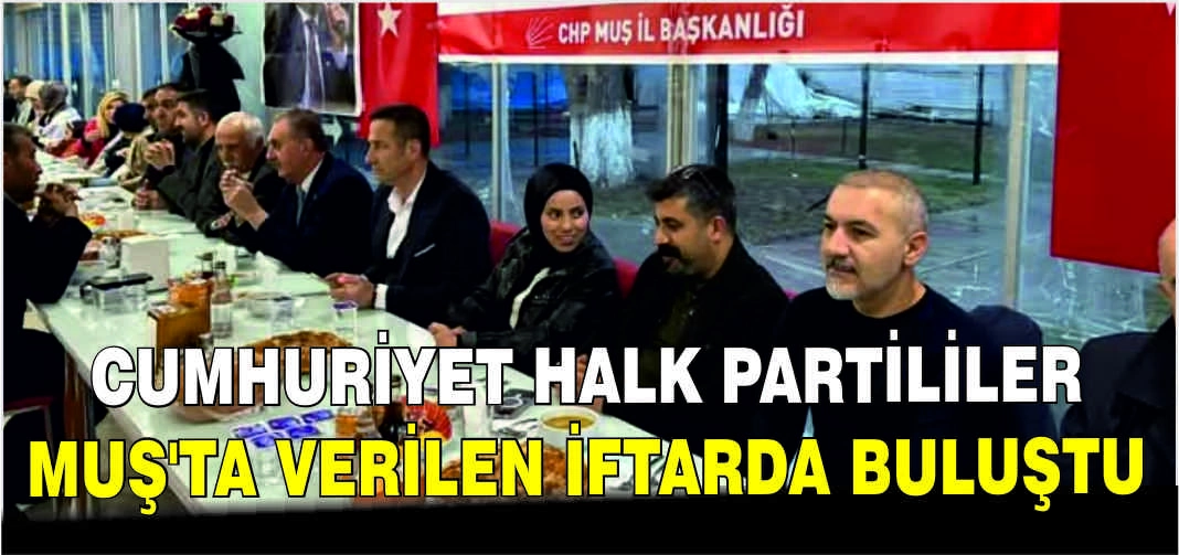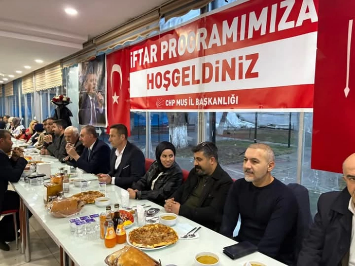 ALPARSLAN DİYARI- CHP Muş İl Başkanı Mehmet Şerif Sönmez ev sahipliğinde Muş’ta bir restoranda düzenlenen iftar programına CHP Kocaeli Milletvekili hemşehrimiz Nail Çiler, Muş Belediyesi Eş Başkanı Tuba Sayılgan, Muş Baro Başkanı Kadir Karaçelik, Muş Gazeteciler Birliği Başkanı Tuncay Çanga, ilçe başkanları, kadın ve gençlik kolları başkanları, sivil toplum kuruluşu temsilcileri, siyasi parti il başkanları ve partililer ile çok sayıda davetli katıldı.