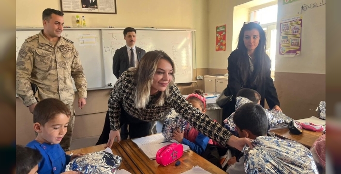 Kars'ta gerçekleşen sıcak ve samimi bir ziyarette, Cumhuriyet Savcısı Feride Irmak Kılınç ile Psikolog Rukiye Uyan, el emeğiyle ördükleri atkıları minik öğrencilere hediye etti.
