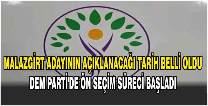 ALPARSLAN DİYARI-Halkların Eşitlik ve Demokrasi Partisi (DEM Parti), 31 Mart 2024'te düzenlenecek olan yerel seçimler için aday belirleme sürecine devam ediyor. DEM Parti, aday göstereceği isimlerin belirlenmesi için 13-14 Ocak tarihlerinde ön seçim yapacak.