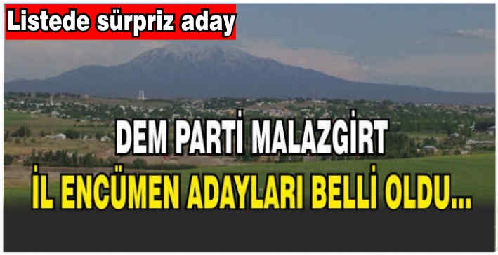 31 Mart yerel seçimlerine sayılı günler kala DEM Parti’de kesin aday listeleri netleşmeye devam ediyor. Bu kapsamda Malazgirt DEM Parti İl Genel Meclis Üyesi adayları da netleşti.