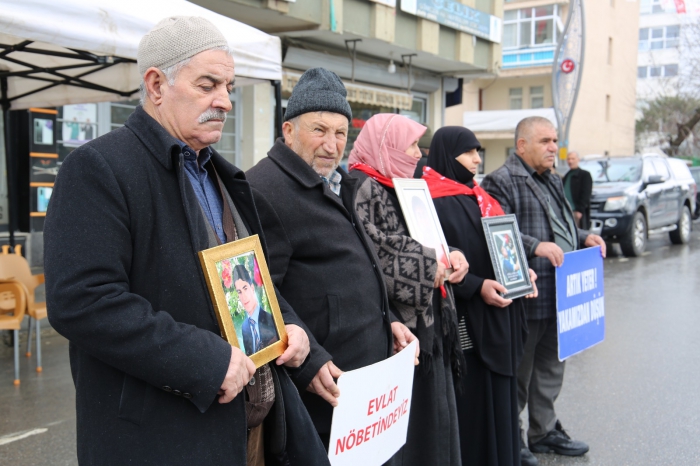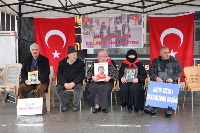 ALPARSLAN DİYARI- Her hafta çarşamba günü Halkların Eşitlik ve Demokrasi Partisi (DEM) il binası önünde bir araya gelen aileler, "Evlat nöbetindeyiz", "Anneler direniyor" ve "Artık yeter yakamızdan düşün" yazılı pankartlar açtı.