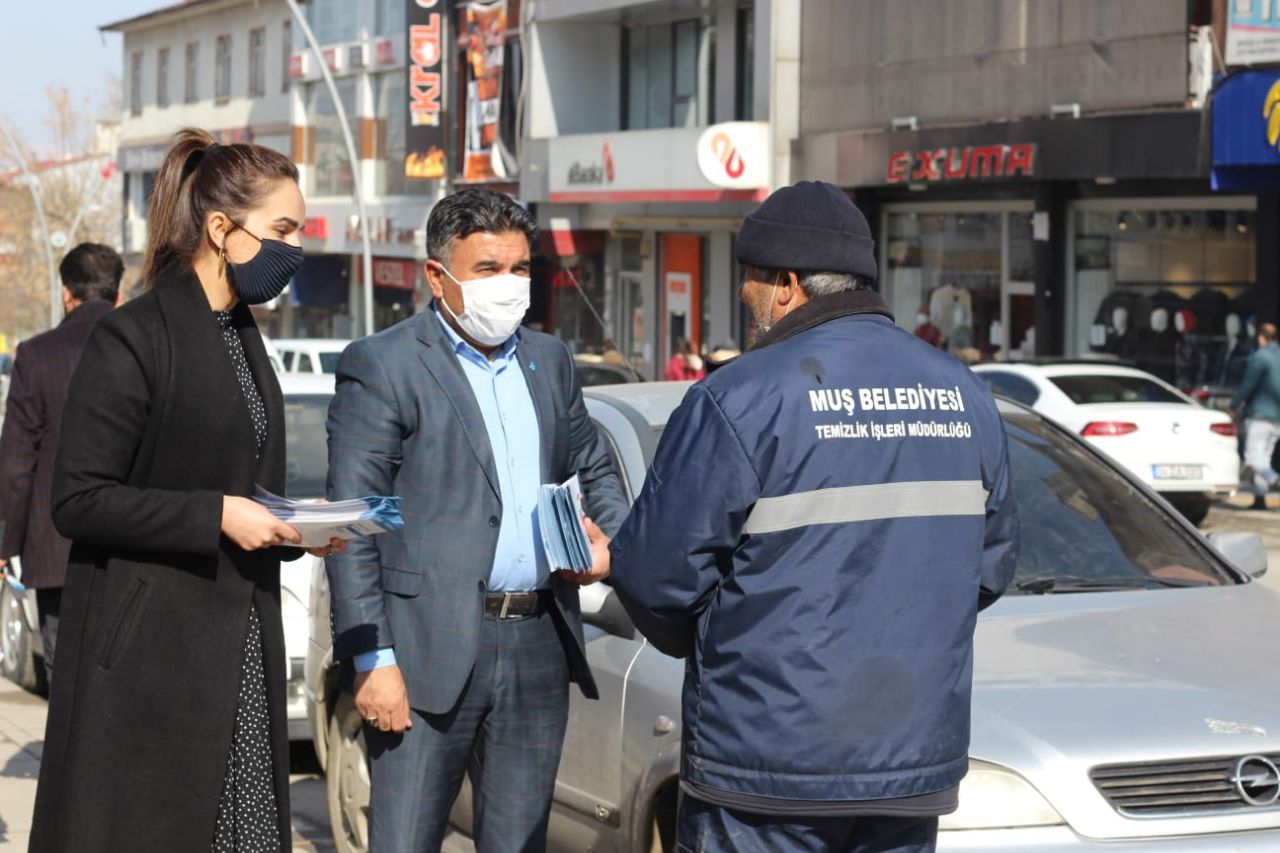 Muş İl Başkanı Av. Elif Çelik İl ve ilçe teşkilat üyeleri ile esnaf ziyaretleri sırasında partilerinin tanıtım broşürlerini dağıttılar