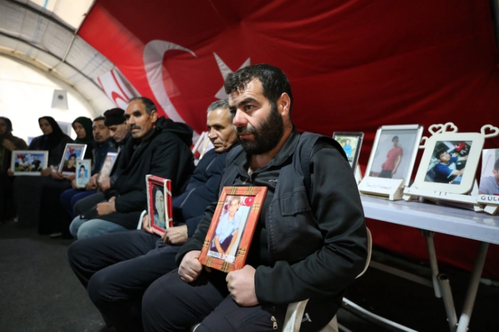 Gelen her evlat için sevinç gözyaşı döken aileler, aynı mutluluğu yaşama ümidiyle, ellerinde çocuklarının fotoğrafıyla eski HDP il binası önündeki çadırda oturma eylemini sürdürüyor.