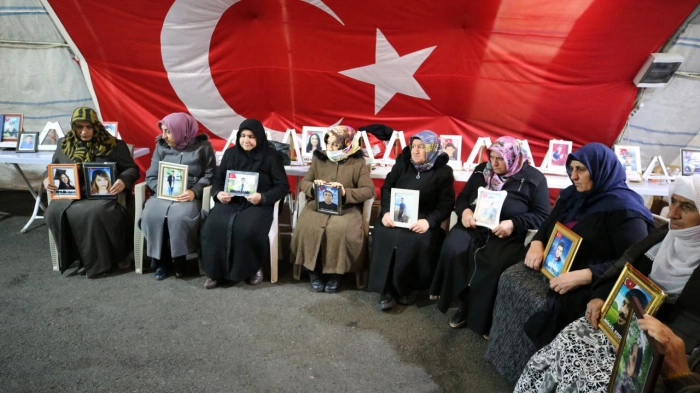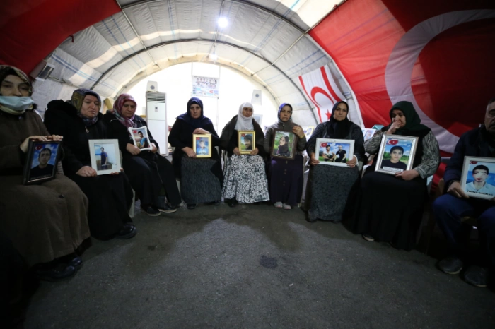 "(HDP) Sözde Kürtler için siyaset yaptıklarını belirtiyorlar. Bunların bir yöneticisi veya herhangi bir milletvekili bir gün gelip buradaki ailelere neden oturma eylemi yaptıklarını sormadı. Buradayız, kararlıyız. Ne yağmur ne çamur ne sıcaklık bizi bu mücadeleden vazgeçiremez. Tüm evlatlar gelene kadar burada kararlılıkla bekliyoruz. Sayın Cumhurbaşkanı'mızın ve devletimizin büyük çabasıyla 60 evladımıza kavuştuk. Darısı diğer ailelerin başına. İnşallah tüm evlatlarımıza kavuşuruz. Bu konuda bize yardımcı olan Sayın Cumhurbaşkanı'mıza çok teşekkür ederim."