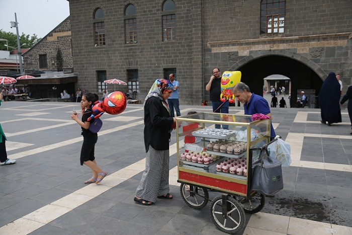 İlçede yaklaşık 10 metrekarelik dükkanda Ayşe Baran'ın (40) hazırladığı çeşitli tatlıları arabasına seyyar arabasına yükleyen Hasan Baran, merkez Sur ilçesinde İçkale Müze Kompleksi, Ulu Cami, Hasanpaşa Hanı ve Dört Ayaklı Minare gibi tarihi ve turistik mekanlarında satışını gerçekleştiriyor.