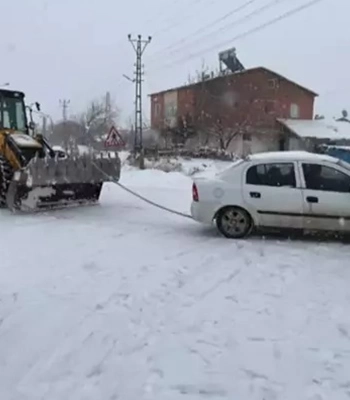 Araç sahiplerinin yardım istemesi üzerine Doğanşehir Belediyesi Fen İşleri Müdürlüğüne bağlı karla mücadele ekipleri yönlendirildi.