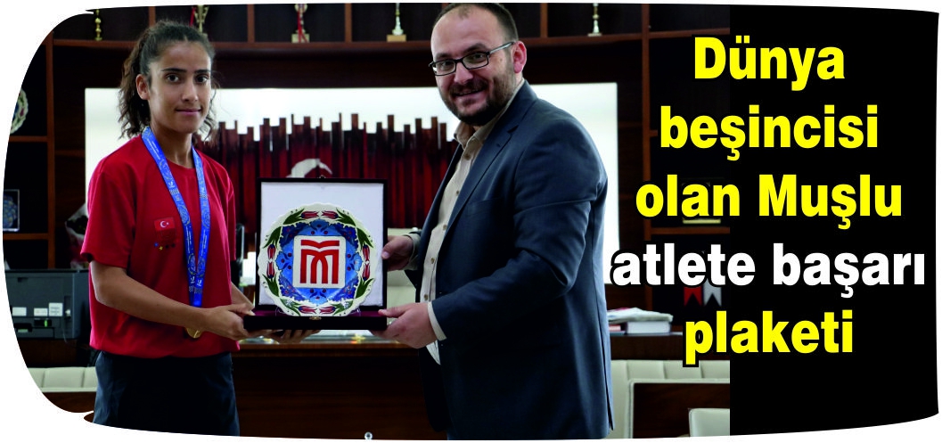 ALPARSLAN DİYARI-Rektör Prof. Dr. Mustafa Alican şampiyonada dünya beşincisi olan sporcusu olan Derya Kunur’u makamında kabul ederek, başarı plaketi takdim etti.