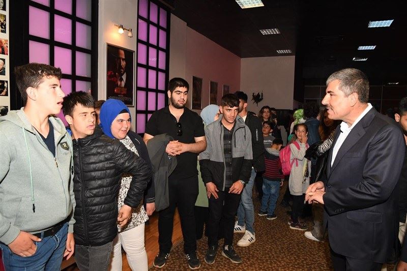 Ali Kuşçu Özel Eğitim Uygulama Okulunda eğitim gören öğrencilere yönelik düzenlenen sinema etkinliğinde film öncesi patlamış mısır ikram eden Başkan Asya, daha sonra onların sinema heyecanına ortak oldu.