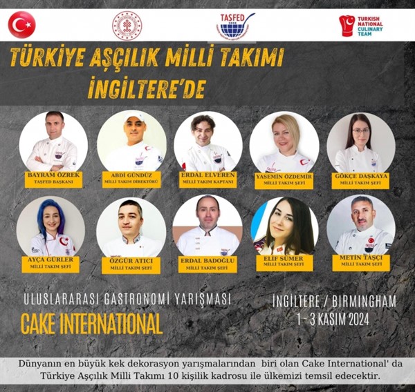 Türkiye Aşçılık Milli Takımı’nın önde gelen isimlerinden TASFED Başkanı Bayram Özrek, Milli Takım Direktörü Abdi Gündüz ve Milli Takım Kaptanı Erdal Elveren liderliğindeki takım, büyük bir heyecanla hazırlıklarını tamamladı. Kadroda ayrıca milli takım şeflerinden Yasemin Özdemir, Gökçe Daşkaya, Ayça Gürler, Özgür Atıcı, Erdal Badoğlu, Elif Sümer ve Metin Taşcı yer alıyor.