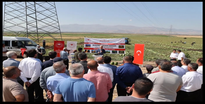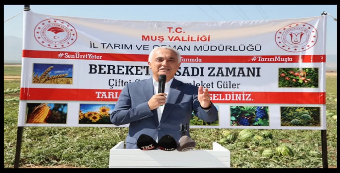 ALPARSLAN DİYARI- Muş Valisi Avni Çakır, "Bereket Hasadı Zamanı" programı kapsamında merkeze bağlı Alican Köyü kırsalında düzenlenen karpuz hasadına katıldı. Tarla sahibi Alican Köyü Muhtarı Şaban Arslan ve köy halkının katıldığı programda konuşan Vali Çakır, hasadın önemine değindi.