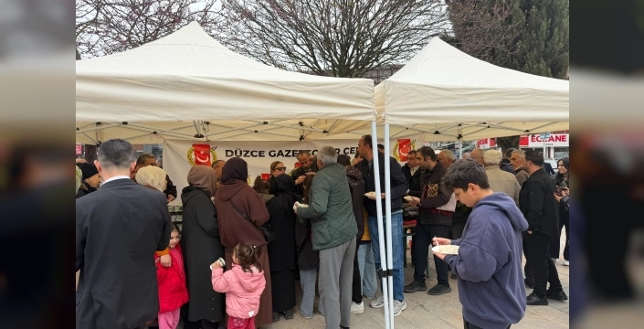 Düzce Gazeteciler Cemiyeti, birlik ve dayanışma ruhunu pekiştirmek amacıyla düzenlediği etkinlikte, Cuma namazı sonrası vatandaşlara yemek ikramında bulundu.